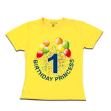 This adorable t-shirt is perfect for celebrating your princess birthday! It features a colorful print of a balloons,and the words "BIRTHDAY 1 PRINCESS". The t-shirt is made of a soft, comfortable material that will keep her cool on her special day. The print is bright and cheerful, and it will make her feel like a real princess.