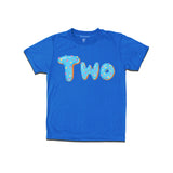 The t-shirt in the image is with the word "TWO" written in a blue sprinkled donut. .The cloth of t-shirts Bio wash 100% soft Cotton ,180 GSM, Combed yarn.The t-shirt is a fun and casual piece of clothing that can be worn for a variety of occasions. It would be a great choice for a day out with friends, a casual night out, or even a laid-back work environment. The t-shirt can be paired with jeans, shorts, or skirts