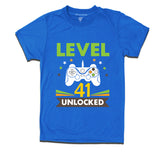 The "Level 41 Unlocked" design t-shirt is a popular choice for gamers of all ages. It is a simple, yet stylish design that features the words "Level 41 Unlocked" in a bold font