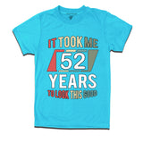 The "It took me 52 years to look this good" t-shirt is a funny and unique gift idea for a 52nd birthday,The recipient is sure to love it, and they will be able to wear it for years to come.