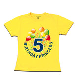 This adorable t-shirt is perfect for celebrating your princess birthday! It features a colorful print of a balloons,and the words "BIRTHDAY 5 PRINCESS". The t-shirt is made of a soft, comfortable material that will keep her cool on her special day. The print is bright and cheerful, and it will make her feel like a real princess.