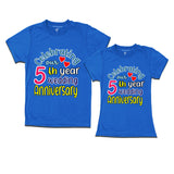 Celebrate your love with celebrating our 5th year wedding anniversary couple t-shirts! These unique t-shirts are perfect for couples who want to show their commitment and celebrate their special day. Choose from a variety of colors, and add your own personal touch with custom text. These t-shirts are sure to be a cherished gift that will last for years to come this dress made with 100% cotton
