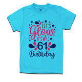 A "Let's Glow It's My 61st Birthday" t-shirt is a great way to celebrate your first birthday. The shirt is made of a soft 100% comfortable cotton , "Let's Glow It's My 61st Birthday!". The shirt is available in a variety of sizes for kids and adults, so you can find the perfect one for your loved one.