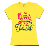 The shirt is made of high-quality cotton and features a vibrant print of the phrase "This Queen Makes 72 Look Fabulous" in a bold font