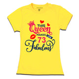 The shirt is made of high-quality cotton and features a vibrant print of the phrase "This Queen Makes 73 Look Fabulous" in a bold font