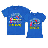 Celebrate your love with celebrating our 8th year wedding anniversary couple t-shirts! These unique t-shirts are perfect for couples who want to show their commitment and celebrate their special day. Choose from a variety of colors, and add your own personal touch with custom text. These t-shirts are sure to be a cherished gift that will last for years to come this dress made with 100% cotton
