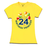 This adorable t-shirt is perfect for celebrating your princess birthday! It features a colorful print of a balloons,and the words "BIRTHDAY 24 PRINCESS". The t-shirt is made of a soft, comfortable material that will keep her cool on her special day. The print is bright and cheerful, and it will make her feel like a real princess.