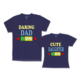The t-shirts have the words "Daring Dad On" and "Cute Daughter On" printed on them. The t-shirts are from the brands GFASHION and are made of 100% cotton.The t-shirts are a great way for the dad and daughter to show their love and support for each other. They are also a fun and stylish way to dress for a day out or event.