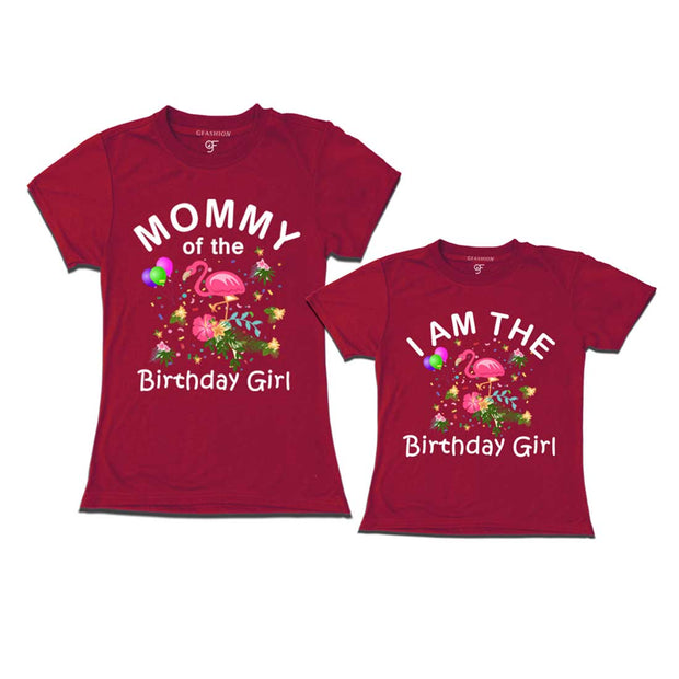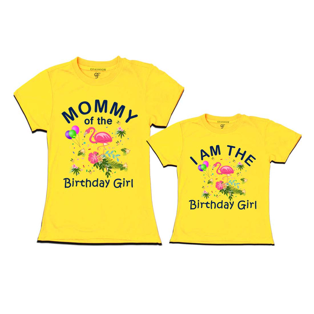 Flamingo Theme Birthday T-shirts for Mom and Daughter