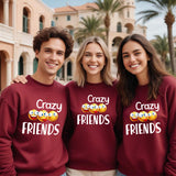 Celebrate the friends who drive you crazy in the best way possible with our fun 'Crazy Friends' sweatshirts. Perfect for friend groups, squad goals, and BFFs