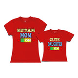 The mom's t-shirt says "Multitasking Mom On" and the daughter's t-shirt says "Cute Daughter On". The t-shirts are from the brand GFASHION and are made of 100% cotton.This t-shirt is a great way for a mother and daughter to show their love and support for each other. It is also a fun and stylish way to dress for a day out or event.