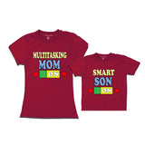 The mom's t-shirt says "Multitasking Mom" and the son's t-shirt says "Smart Son". The t-shirts are from the brand GFASHION and are made of 100% cotton.This t-shirt is a great way for a mom and son to show their love and support for each other. It is also a fun and stylish way to dress for a day out or event.