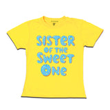 The t-shirt  is with the words "Sister of the Sweet One" written on it. The t-shirt is made of 100% cotton.The t-shirt is a great way for a Sister to show her love and support for her sister or brother. It can be worn on any occasion, but it would be especially appropriate for a birthday, holiday, or other special event.
