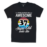 Looking for a great way to celebrate 37 years of living life to the fullest? Look no further than our "This is What an Awesome 37 Years Looks Like" t-shirt! Made from100% cotton  and available in a variety of sizes, this shirt is the perfect way to show off your decades of awesomeness. Whether you're celebrating a milestone birthday, anniversary, or just want to remind everyone how incredible you are, our t-shirt is the perfect addition to your wardrobe. The design features bold, vibrant text, making it easy to read and a standout piece. Additionally, the breathable fabric makes it comfortable to wear all day long, while the high-quality printing ensures that the message on the shirt will last for years to come. So why wait? Celebrate your amazing 37 years with our "This is What an Awesome 37 Years Looks Like" t-shirt today and show the world how awesome you truly are!