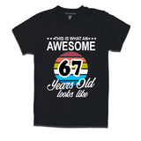 Looking for a great way to celebrate 67 years of living life to the fullest? Look no further than our "This is What an Awesome 67 Years Looks Like" t-shirt! Made from100% cotton and available in a variety of sizes, this shirt is the perfect way to show off your decades of awesomeness. Whether you're celebrating a milestone birthday, anniversary, or just want to remind everyone how incredible you are, our t-shirt is the perfect addition to your wardrobe. The design features bold, vibrant text, making it easy to read and a standout piece. Additionally, the breathable fabric makes it comfortable to wear all day long, while the high-quality printing ensures that the message on the shirt will last for years to come. So why wait? Celebrate your amazing 67 years with our "This is What an Awesome 67 Years Looks Like" t-shirt today and show the world how awesome you truly are!