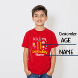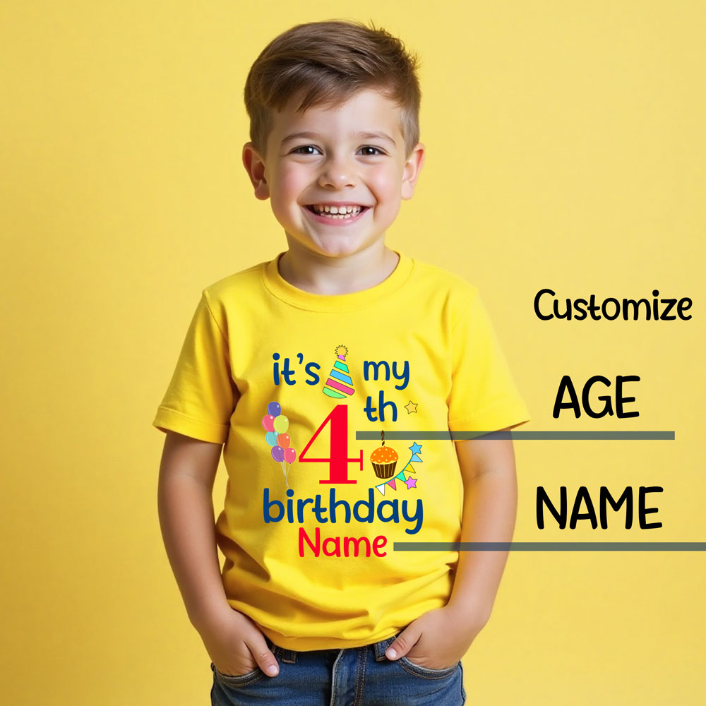 Celebrate your birthday in a custom t-shirt! Personalize it with your age and name for a unique and memorable look. Start designing your perfect birthday shirt today.