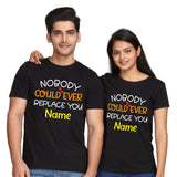 Style- Nobody could ever replace you with name customize Round neck half sleeve black color t-shirt