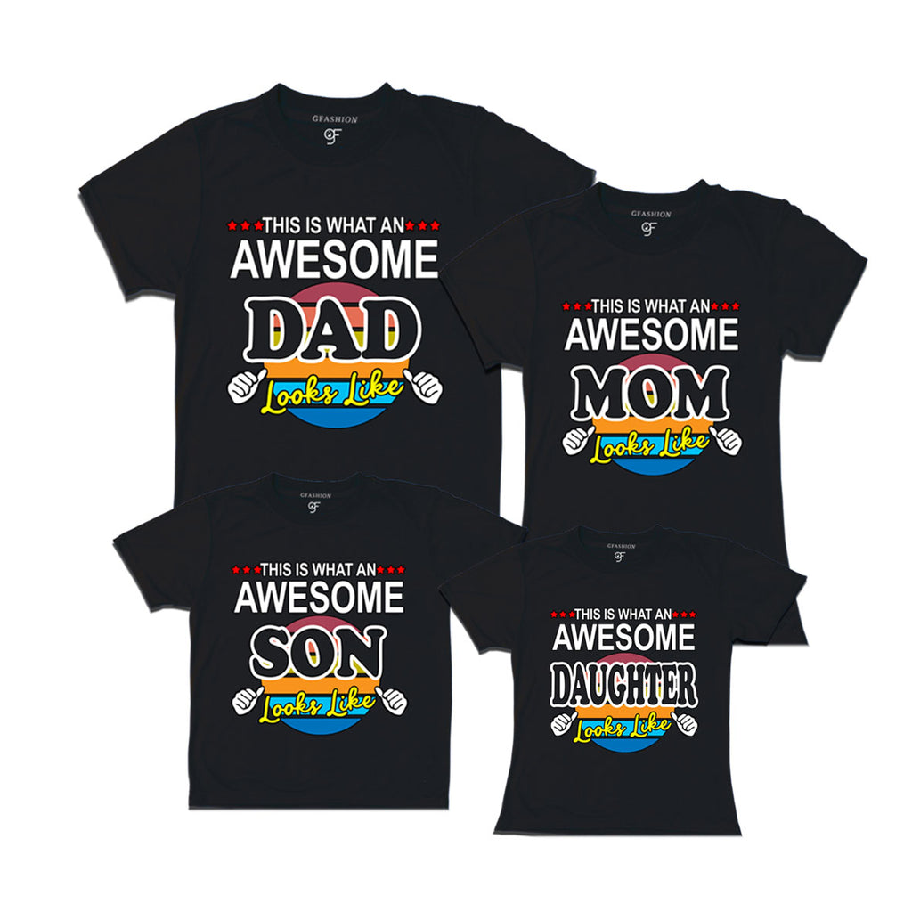 This is What An Awesome Dad Mom Daughter and Son Looks Like Printed T-shirts