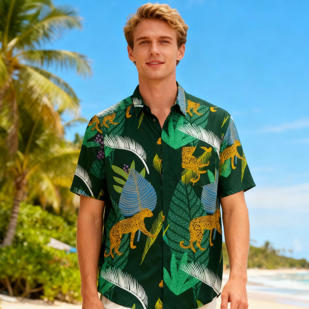 Relaxed & Ready: The men's Regular Fit Aloha shirt offers a comfortable, non-restrictive silhouette, perfect for laid-back island days and warm weather.
